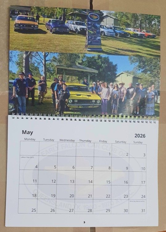 The Early Falcon Car Club of Queensland's 2026 Calendar featuring photos of members cars